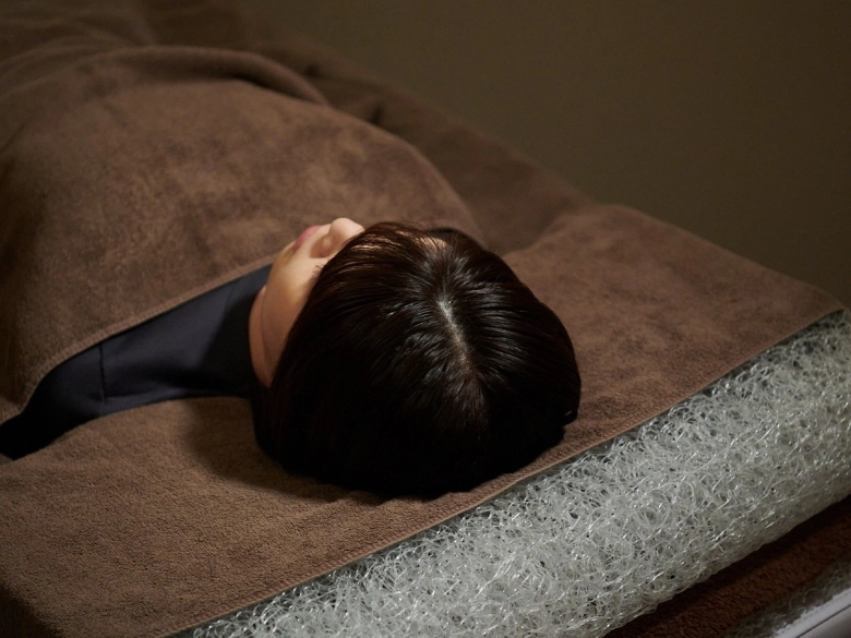 いよいよ施術スタート。頭皮をほぐしてもらいながら、その日の体調や睡眠状況などについて担当の方に伝えていきます。目を酷使する毎日なので、頭は常にカチコチ。この頭皮マッサージだけでも極楽です。
