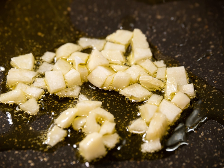 - にんにく・しょうが・香辛料を炒める
