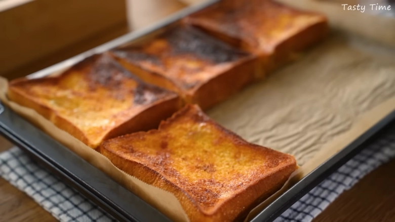 TastyTimeさんは、食パンをフレンチトーストにアレンジ!シナモンをきかせた卵液に浸し、バターをのせてオーブンで焼き上げます。より豪華にしたいなら、厚めに切った食パンに切り込みを入れ、板チョコを仕込んでみて♪まとめて作って冷凍すれば、いつでもおいしいフレンチトーストが味わえます。