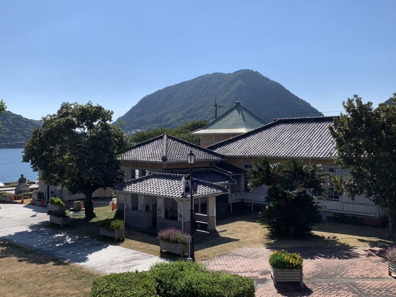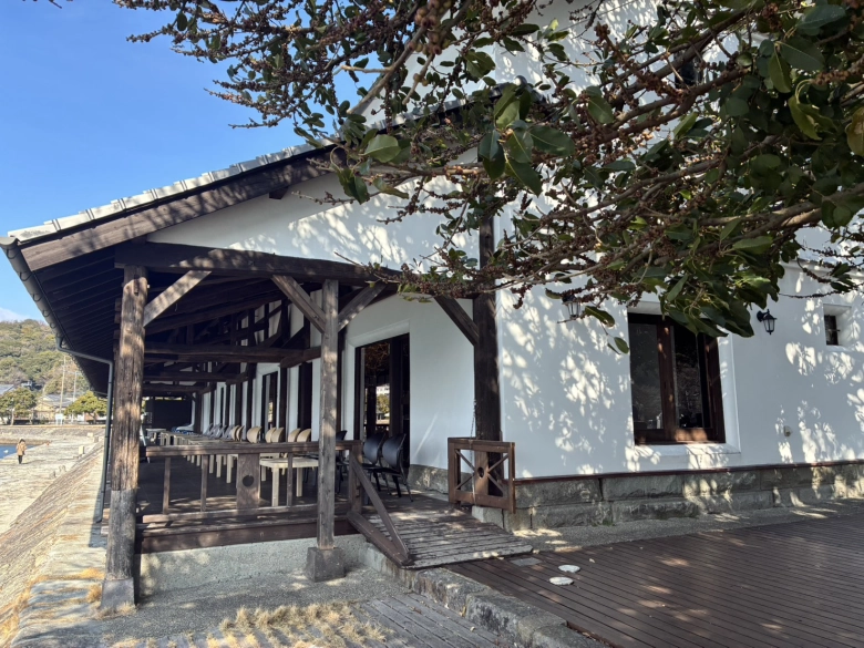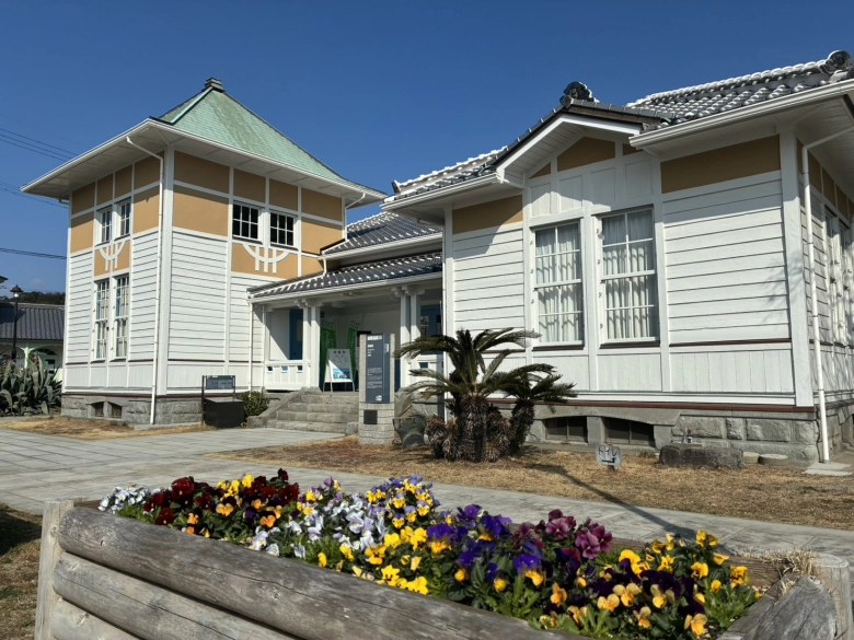 当時の風景を今に伝える三角西港ですが、『坂の上の雲』『半次郎』『いだてん』『るろうに剣心』などテレビや映画のロケ地としても利用されてきました。裁判所のすぐそばにあるのが、「旧宇土郡役所」。白い漆喰の外壁が美しい西洋風の建物で、今も海技士養成のための施設として利用されています。