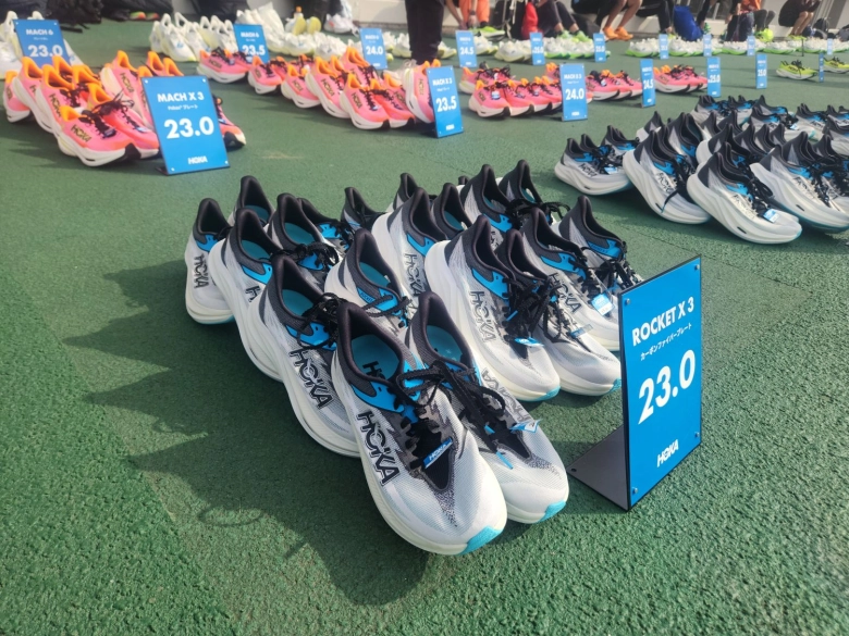 このイベント最大の魅力は、HOKAのシューズをレンタルして10km実走出来ること。 会場では新作を含め、複数のモデル、サイズが用意されておりスタッフさんが足の状態や走力、目的をヒアリングしてくれました。