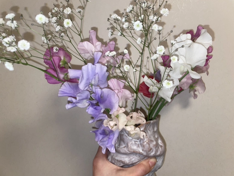 愉快に踊る時もあれば、アーティスティックに踊る時もあれば、ロマンチックに踊る時もあります。音楽をかけながら、ふざけた動きを共にしている時間は、何はともあれ楽しいです。そしてオットはよく、お花を買ってきてくれます。これは、私たちのご機嫌をとってくれているんだと思います。大袈裟な感じじゃなく、さり気ない、ちょうどいいボリュームのお花たち。なんでもない日々のサプライズに、こういうのがちょうど良くってうれしいんです。