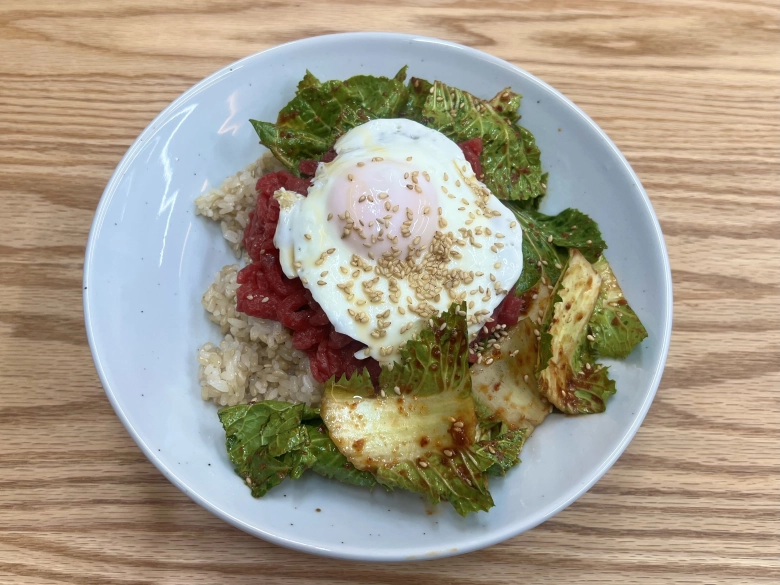 今回はユッケを入れて作ってみました♪ - よく混ぜて完成!