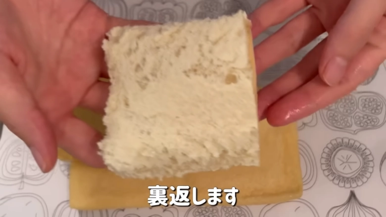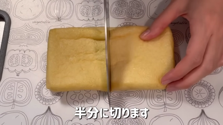 - ①を半分に切って、袋を広げ裏返す
