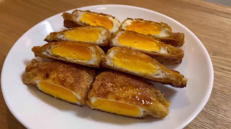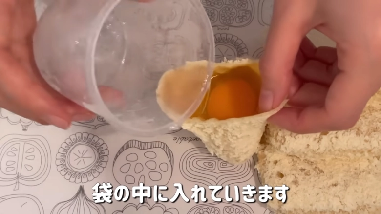 残りの油揚げも同様に、1個ずつたまごを割って油揚げに入れ、口を閉じてください。