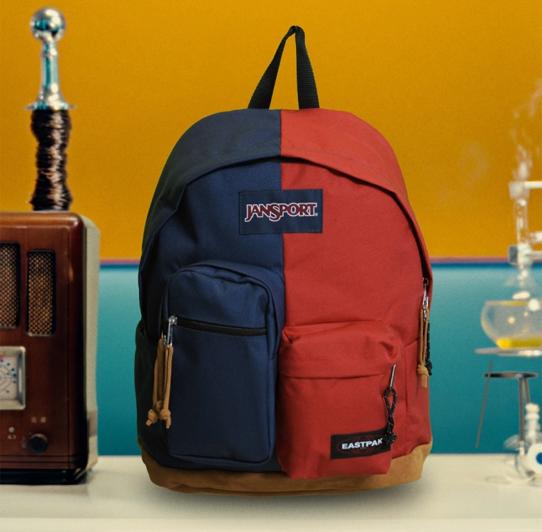 左のネイビー部分には【JANSPORT】「Right Pack」を、右のレッド部分には【EASTPAK】「Padded Pak’r」と、代表モデルならではのそれぞれの個性がしっかりと息づいています。正面から見ると、両ブランドを象徴するポケットが隣り合うように配置され、思わずじっと見比べてみたくなりますよね。遊び心と日常使いの機能性を大切にしたアイデアに【BEAMS】っぽさが感じられます!こちらの〈ネイビー×レッド〉はBEAMS BOYで購入できます。