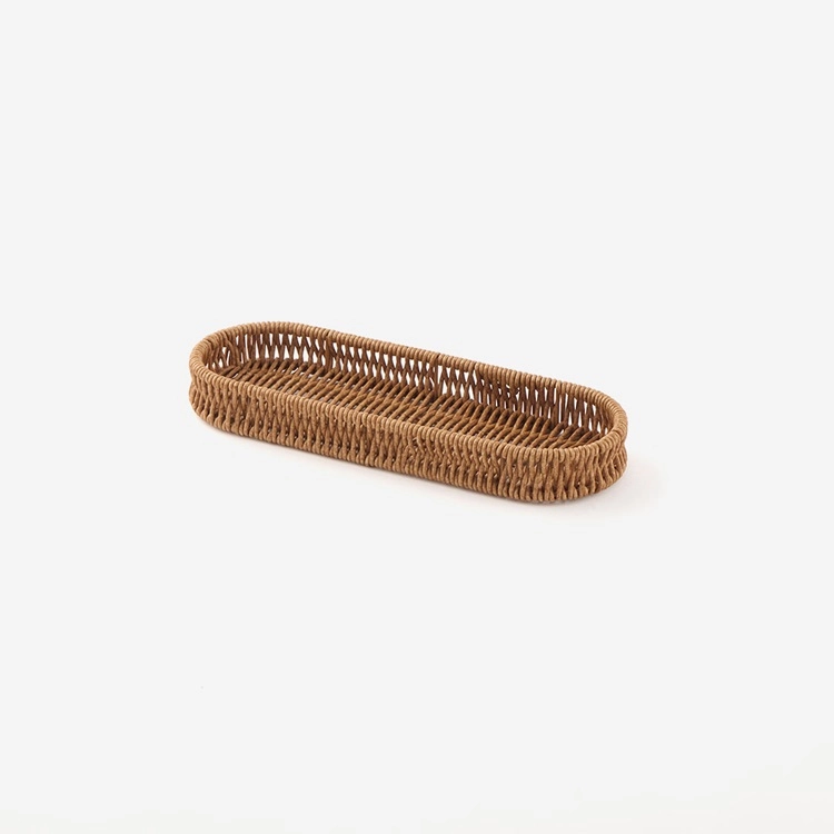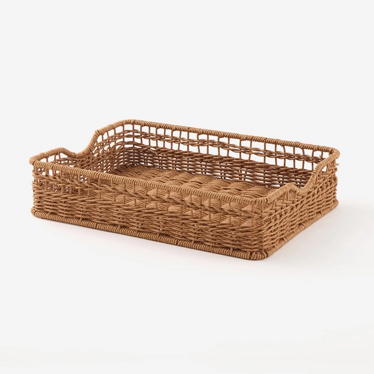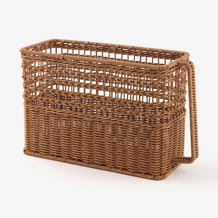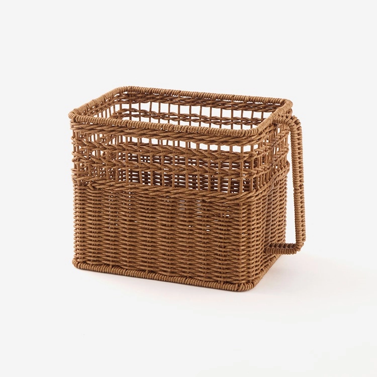 樹脂製のPP(ポリプロピレン)でできているラタ調の収納ボックス。ナチュラルな風合いがまるで天然素材のような仕上がりに。人工ラタンだから汚れてもサッと洗えるのでいつでも清潔に保てます。キッチンやリビング、湿気が気になるバスルームやランドリースペースなどでも使えますよ。
