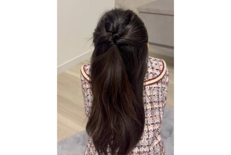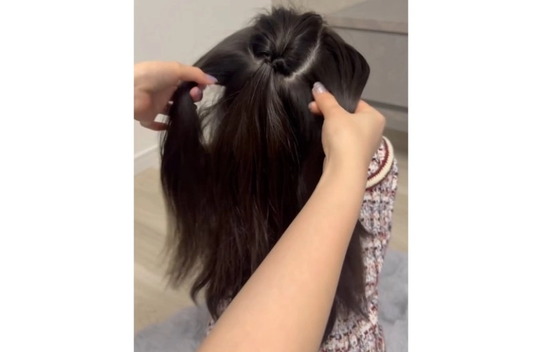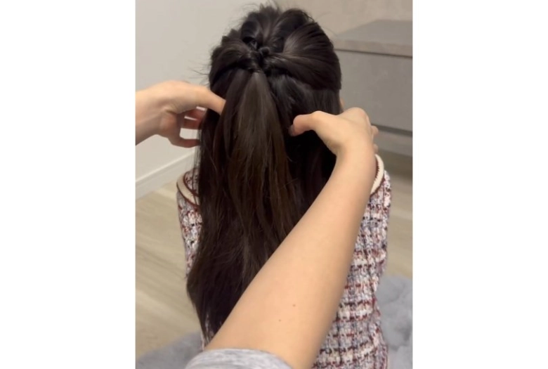 - ③より下の位置の毛束を後ろで結んでくるりんぱ