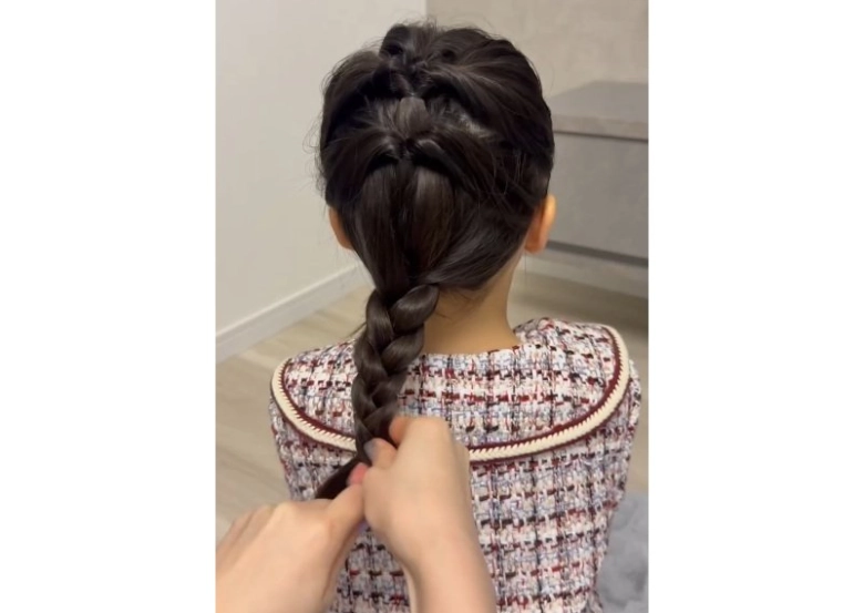 ⑤ 全体を三つ編みして毛先は輪っかで結ぶ