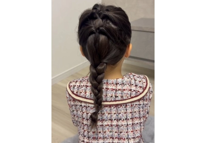 - 全体を三つ編みして毛先は輪っかで結ぶ