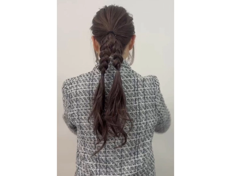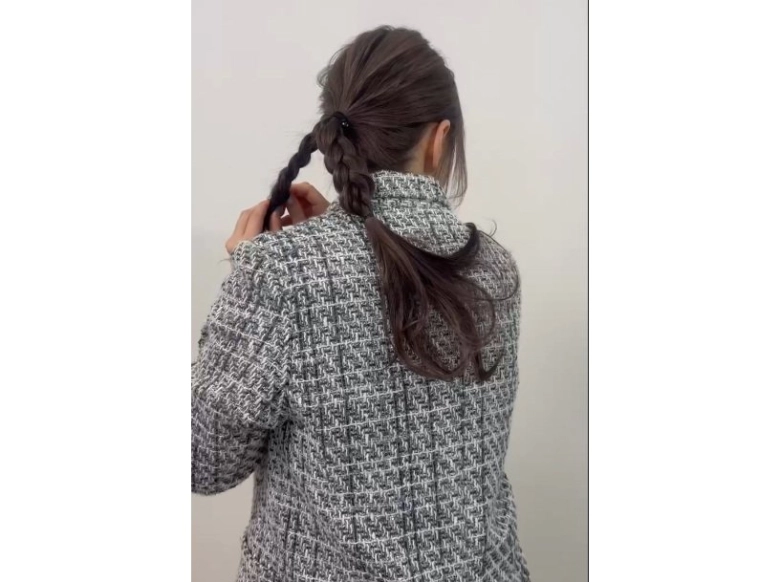 もう片方を、真ん中くらいまで三つ編みしましょう!