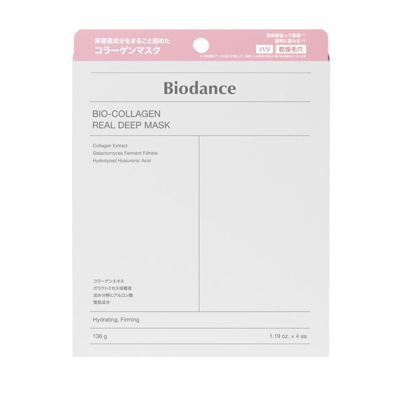 バイオダンスを代表する商品のハイドロゲルマスク、「リアルディープマスク」は、1枚につき34gの美容液を1本丸ごと固めたゲルシートが特徴です。