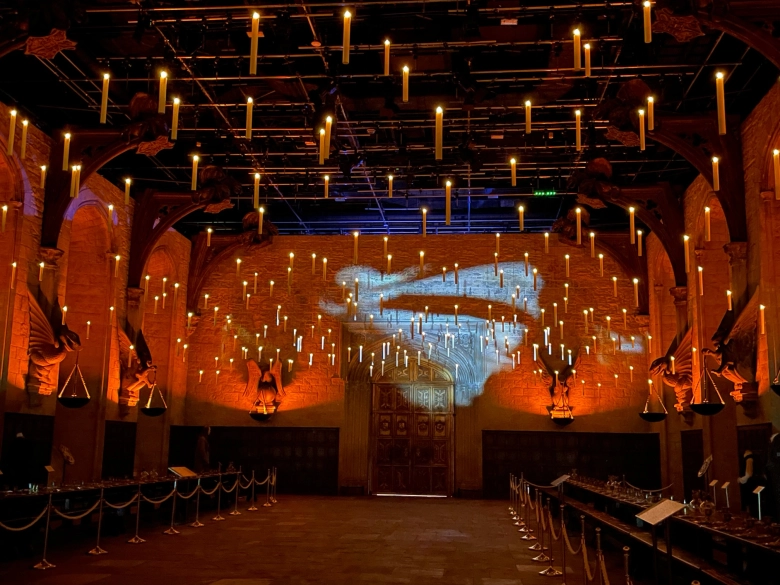 祝宴やクリスマス、ダンスパーティー、魔法決闘などの名シーンたちで使われた「大広間」。ハリー・ポッターと言えば、この場所を思い浮かべる人も多いのではないでしょうか。大広間へと続く扉が開くと、“宙に浮かぶキャンドル”が見え始め、その綺麗な景色に感動すること間違いなし。また、圧巻の広さにも驚くはず!(なんと、ロンドン式二階建てバス22台が収まるほどだとか!)