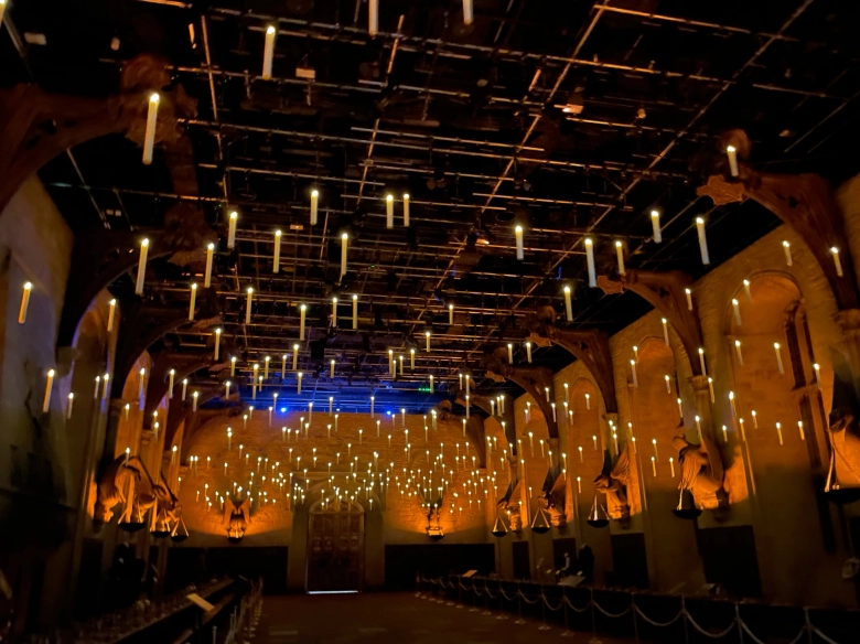 大広間ではプロジェクションマッピングの演出もあり、ホグワーツのゴーストたちが姿を現して、新入生を歓迎します。ゴーストからの歓迎に驚きと、ちょっと何かが起きそうなゾクっとするような感覚も…(笑)。大広間は映画の名シーンを体験できるポイントなので、ぜひゆっくりと堪能してもらいたいです!
