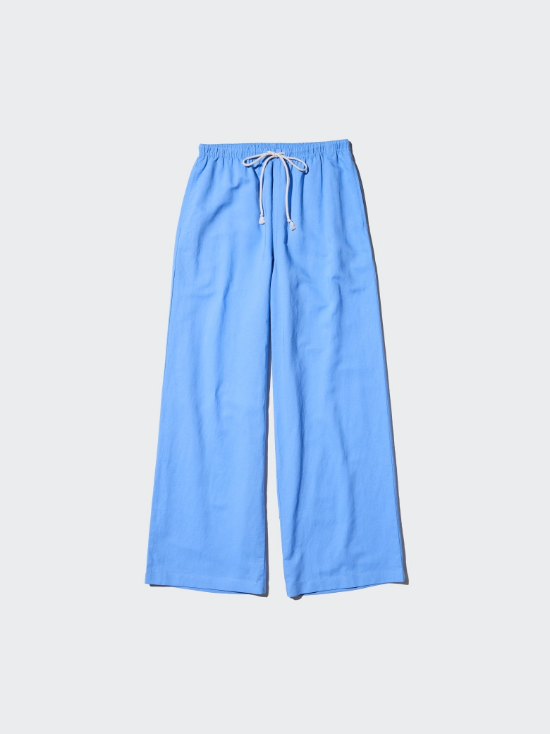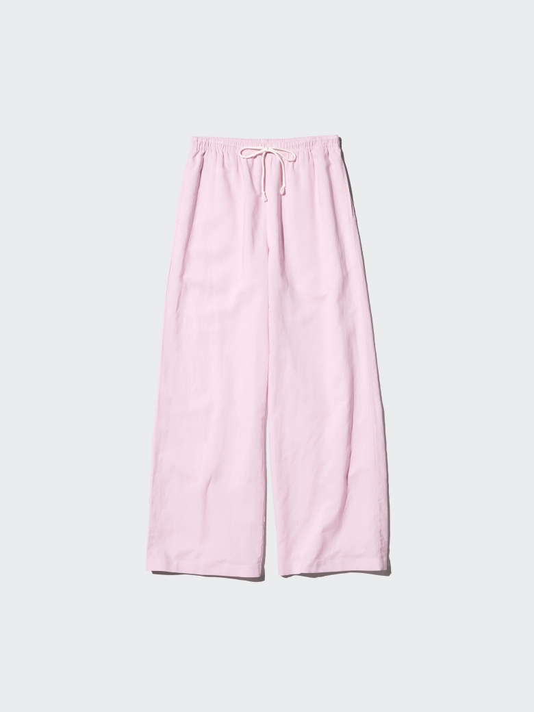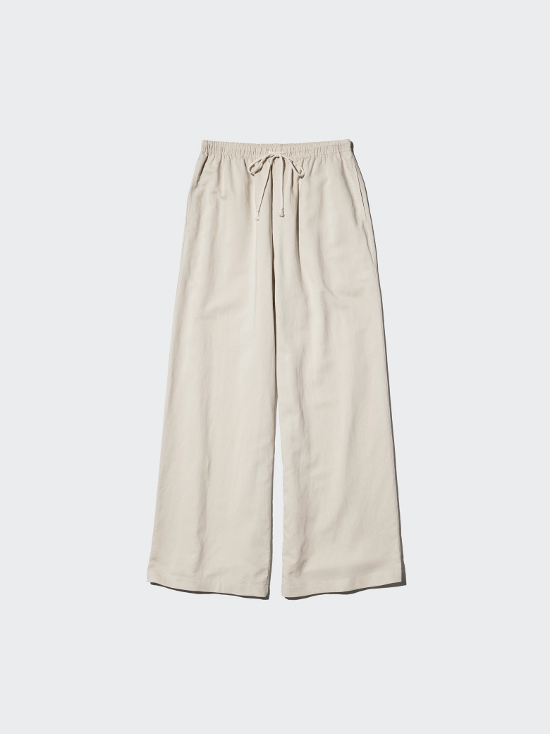 細幅のゴムとコードでウエスト周りをスッキリ。ヒップをきれいに見せつつ、脚のラインを拾わず長く見せてくれます。透け感のないワイドなストレートシルエットで通気性がよく、サラッと着られて足さばきがいいのも重要なポイントですよね。洗濯機で洗えるので明るい色でも汚れを心配する必要がありません。
