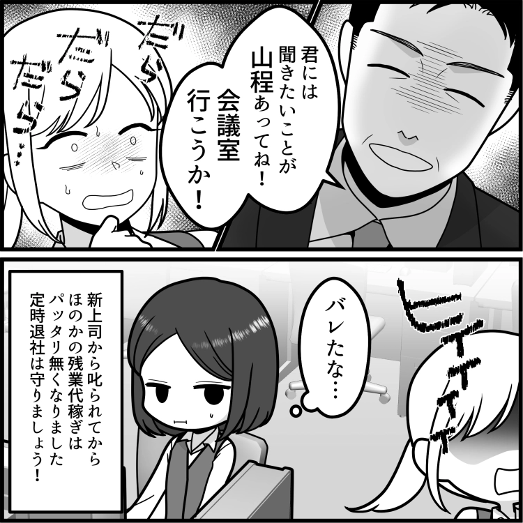 タスクが無いのに残業代稼ぎのためだけに残っていたほのかですが、案の定上司にバレて、お咎めを受けたようです。このような社員がいると周りのモチベーションに影響するので、環境が改善されて良かったですね!
