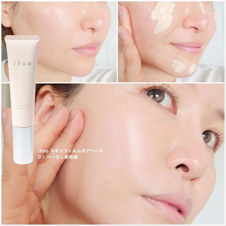 それぞれカラーコントロール下地としても使えるくらいの発色。さらに下地にしては珍しい、少しだけ重ためなテクスチャーが特徴で、この絶妙な重さこそ千吉良さんのこだわりです。発表会でも「このテクスチャーだからこそしっかり肌にフィットし、肌表面をフラットに整えてくれる」と教えて下さいました。3種類のパウダーを配合し、毛穴の凹凸も限りなく均一にカバーしてくれるほか、トーンアップ効果も高いので肌の明るさや印象を華やかにしたい方は是非♪