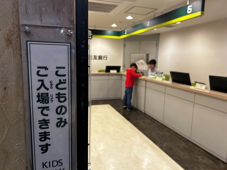 仕事体験でキッザニアの専用通貨「キッゾ」をお給料としてもらえます。施設内には銀行もあって、口座を作り・お金を預ける体験もできます。銀行に入ることができるのは子どもだけ!これも次男の度胸が試されます。