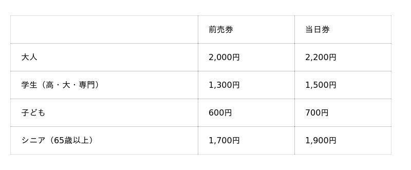 当日券 :7月19日(土) 00:00 ~ 9月23日(火)19:00まで