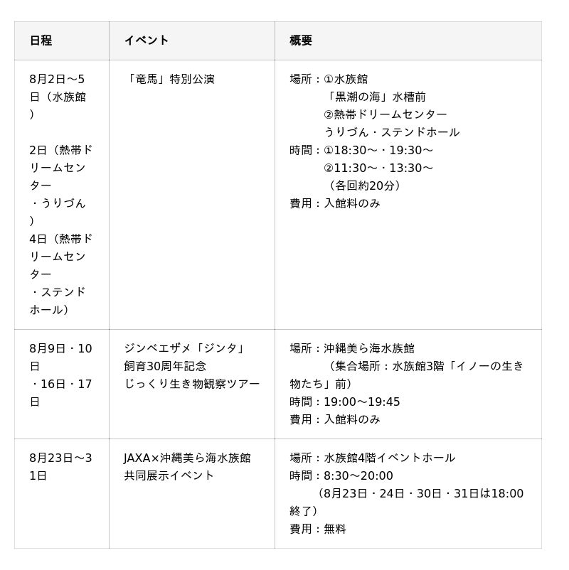 掲載しているイベント・プログラムの詳細は、海洋博公園・沖縄美ら海水族館の公式HPをご覧ください。