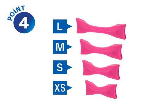 XS~Lの4サイズ鼻ベルト長さの異なる4サイズの鼻ベルト(XS/S/M/L)を標準装備。