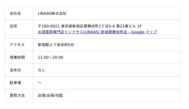 リンクサスはお酒専門の買取店で、響などのウイスキーをはじめ、ブランデーやシャンパンなど多彩なジャンルを取り扱っています。店舗は福岡店と東京5店舗ですが、宅配買取で全国対応しています。