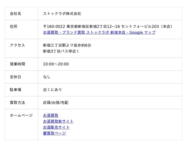 ストックラボは全国で24店舗展開する買取専門店で、ブランド品やお酒を中心とした豊富な買取実績があります。買取できるお酒の種類は、ワイン買取・ブランデー買取・ウイスキー買取・シャンパン買取・日本酒買取など多彩です。