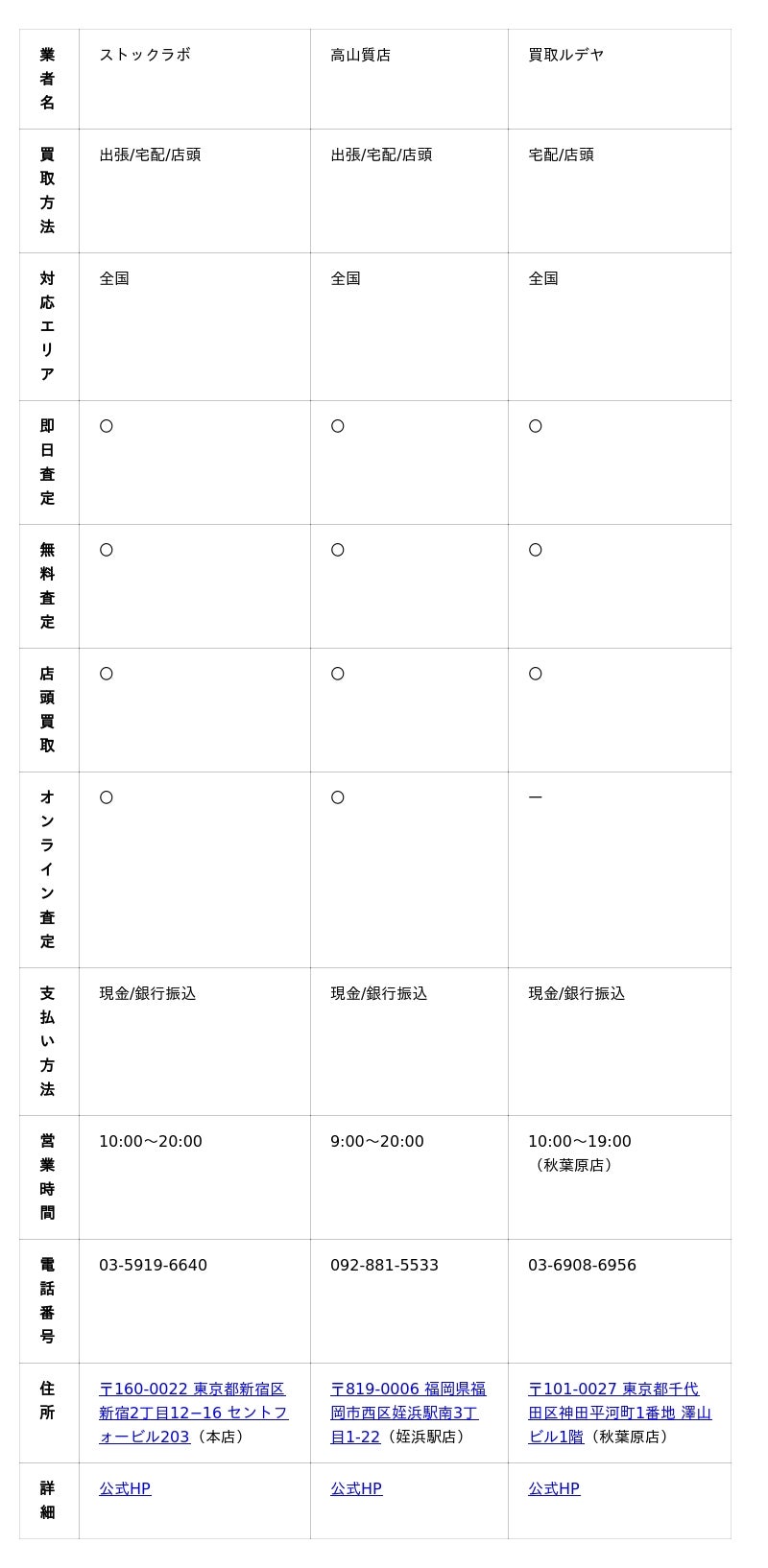 - 宅配買取など、都合に合わせた柔軟な買取方法を選べるか