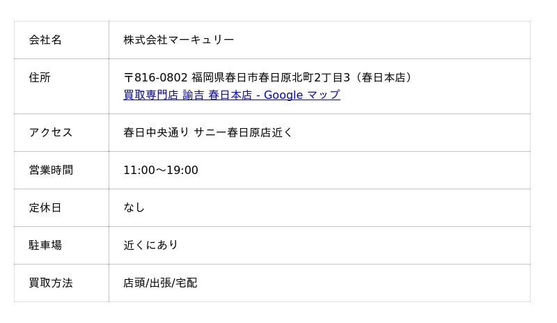 買取専門店 諭吉は、九州に3店舗展開する買取専門店です。ブランド品や貴金属、iPhoneなど幅広く買取し、ウイスキー、ブランデーなどのお酒も取り扱っています。店舗が近くにないエリアは、配送料無料の宅配買取で対応。催事買取など、多彩な買取方法も提供しています。
