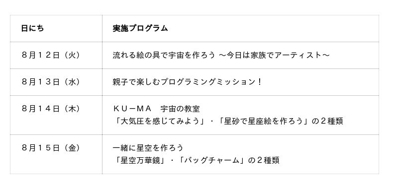 「宇宙」をテーマに各種ワークショップを実施します。