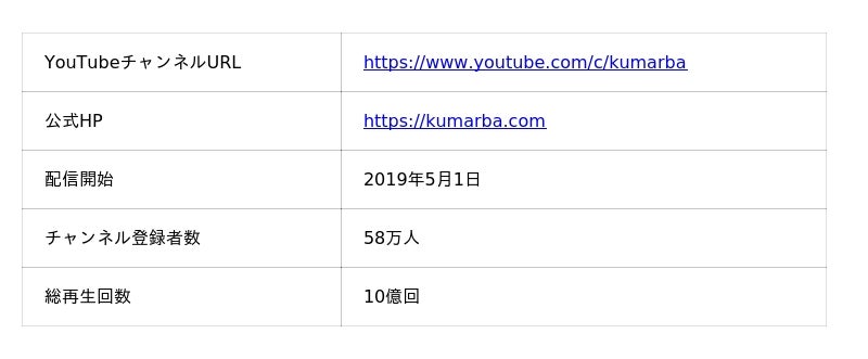 クマーバチャンネルは、お子さんがキャラクターと一緒に楽しく成長できるエンタメ知育チャンネルです。「未就学児の想像力と表現力を豊かにし、可能性を広げる」ことをテーマにコンテンツを制作しています。YouTubeで良質なコンテンツを配信することで、いつでもどこでも楽しみながら心身ともに成長できることを目指しています。