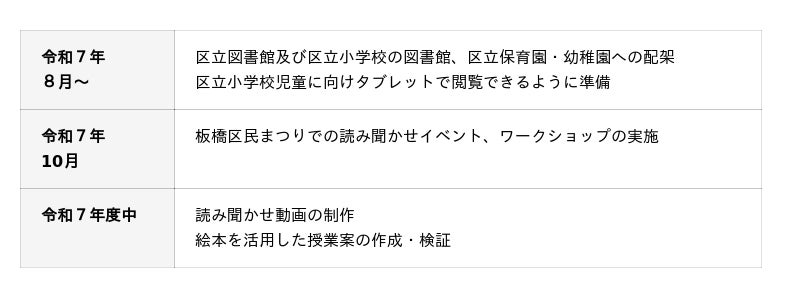 併せて、区立図書館での配架を行うとともに、板橋区民まつりでの読み聞かせイベントや、ワークショップの開催、読み聞かせ動画の作成など、絵本の内容を広く周知し、子どもたちのこころの健康に関する教育をさらに推進していきます。
