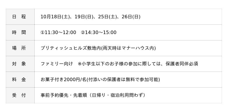 【ブリティッシュヒルズHP】 https://www.british-hills.co.jp/【イベント詳細】https://www.british-hills.co.jp/stay/news/274/
