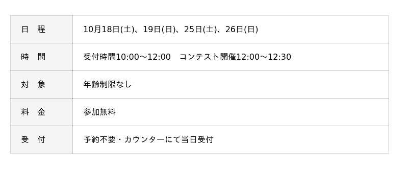 思い思いのハロウィンコスチュームで参加できる仮装コンテストを開催いたします。おばけや魔女、アニメキャラクターなど、個性あふれる仮装でエントリーし、会場を盛り上げましょう。上位入賞者には景品をプレゼントいたします。ぜひご家族やご友人と一緒にご参加ください。