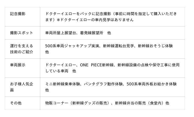 西日本旅客鉄道株式会社では、山陽新幹線の運行を支える技術に触れる特別な場として、博多総合車両所公開イベント「新幹線ふれあいデー」(以下「新幹線ふれあいデー」)を開催いたします。今年も、参加人数を限定した有料イベントとして開催し、様々な企画をお楽しみいただけます。また、ご来場の皆様全員に、ドクターイエローとの記念撮影をお楽しみいただける特別企画をご用意しています。