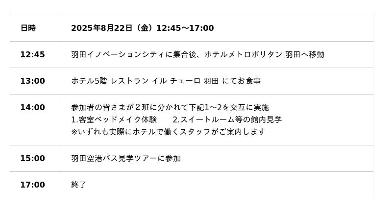 ■ホテルメトロポリタン 羽田が協力参加する日程の内容