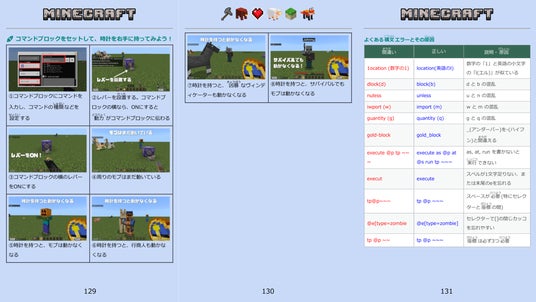本書は、プログラミング教室「KIDSPRO」の栗木先生が授業用に作成した「コマンドセット」に、コマンドブロックの基本的な使い方やNPC設定方法などを加え、教材としても使えるくらい詳しくまとめた一冊です。
