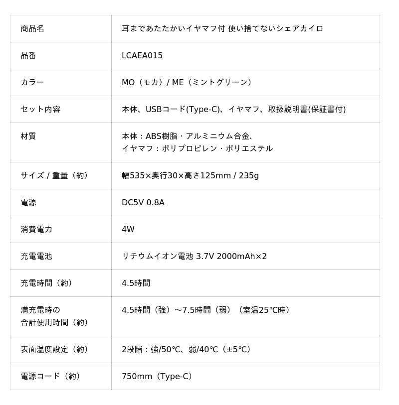 「耳まであたたかいイヤマフ付 使い捨てないシェアカイロ」LCAEA015