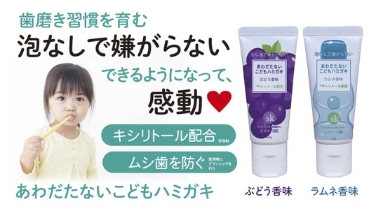 創業百年超エスケー石鹸より「あわだたないこどもハミガキ」が新発売!できるようになるから、“感動ハミガキ”!16年ぶりリニューアルで進化した歯磨き粉!発泡剤不使用/無添加/口腔ケア甘味料キシリトール配合