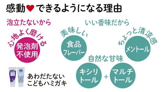 できるようになるから、感動 NEW「あわだたないこどもハミガキ」とは