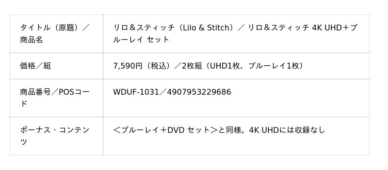 この度発売のブルーレイ+DVDセット、4K UHD+ブルーレイ セットには、なんとスティッチの解説付きで名シーンを楽しめる「スティッチと一緒に見よう!」や、オリジナル版も楽しめる「オリジナル版と比べてみよう」、思わず笑みがこぼれる「NGシーン集」など、愛と遊び心があふれるファン必見の映像を収録!本編と合わせて楽しむことができます。