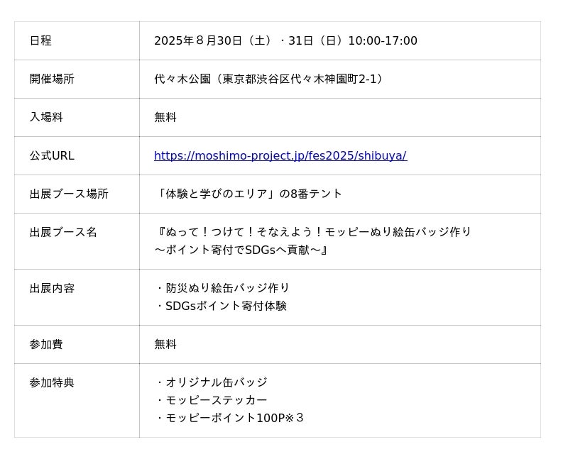 モッピーが「もしもFES渋谷2025」に協賛、『防災ぬり絵缶バッジ作り』を出展