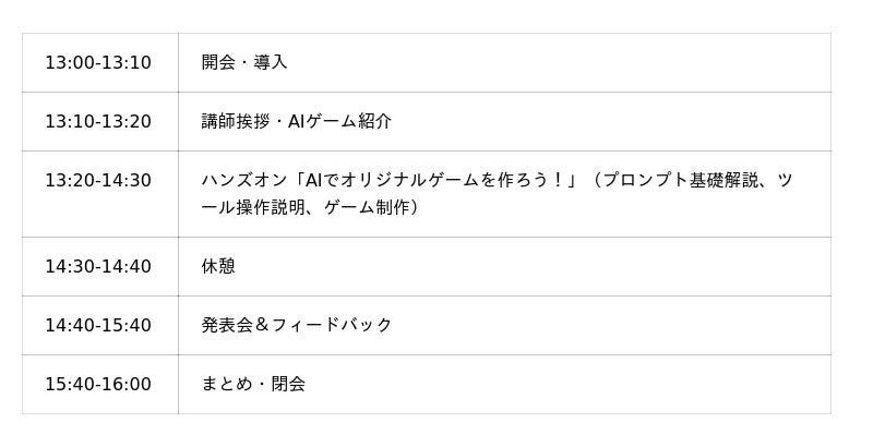 「日本をAI先進国に」を掲げ、利用者数No.1※のAI大学「SHIFT AI」を運営する株式会社SHIFT AI(東京都渋谷区、代表取締役 木内翔大)は、来る2025年10月19日(日)に、AI技術に触れる機会の少ない小中高生とその保護者を対象とした体験型学習イベント「親子で挑戦!AIゲーム制作体験会」を開催いたします。