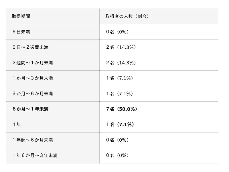 【当社の男性社員が育児休業を取得した期間】2021年~2025年累計