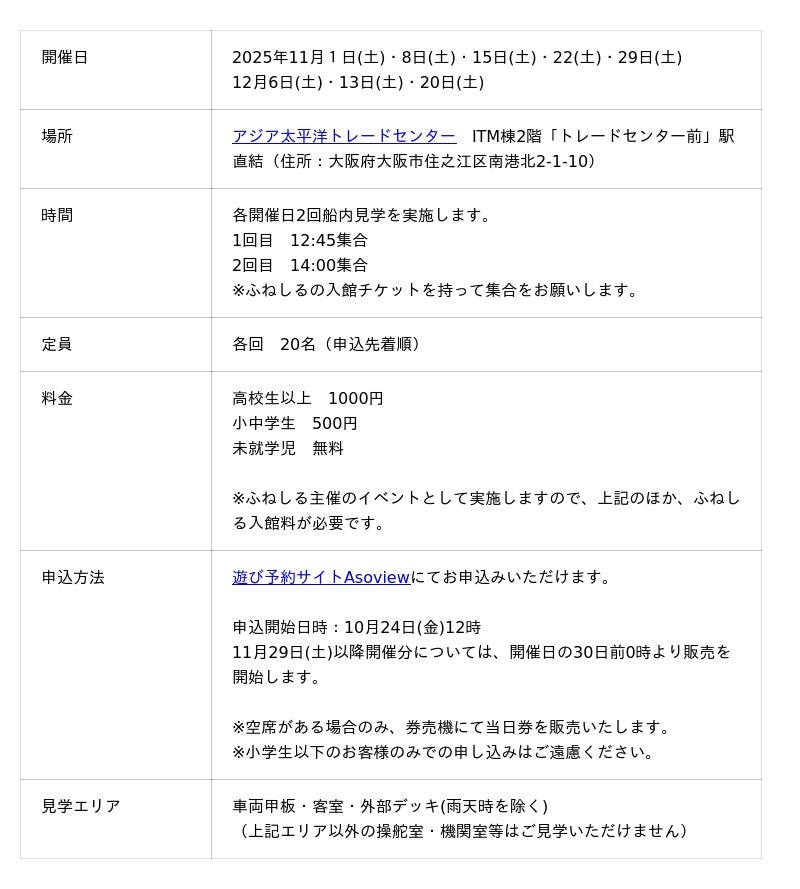 ~大阪南港 体験型ミュージアム「ふねしる」主催 期間限定イベント~