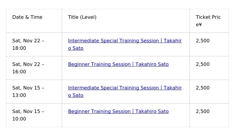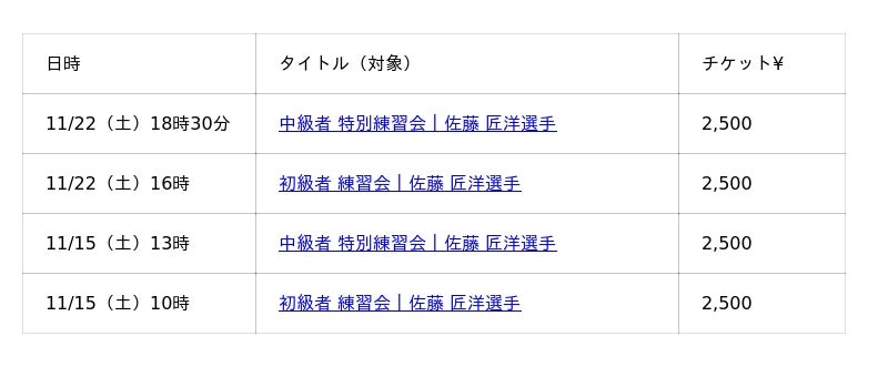 【リリース概要|佐藤 匠洋 選手による 初級・中級 練習会】