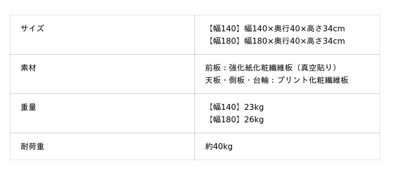 140cmと180cmの2サイズから選べるため、リビングの広さやテレビのサイズに合わせてコーディネートをお楽しみいただけます。