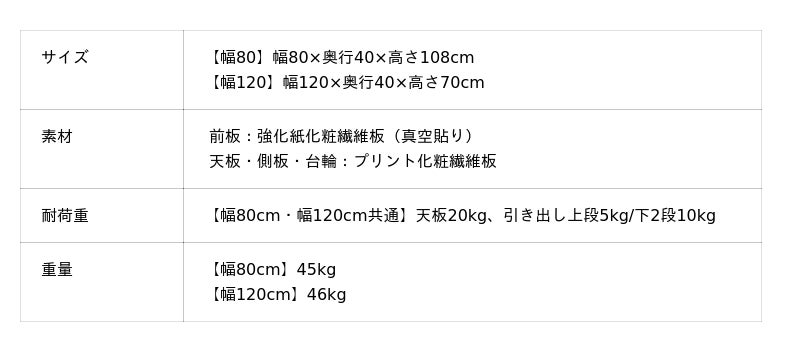 (左)ロータイプ幅120cm(右)幅80cm