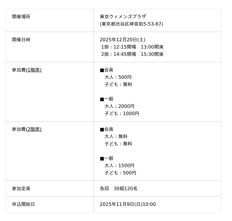 【12/20(土)開催】クリスマスコンサート2025、渋谷の東京ウィメンズプラザで「重症心身障がい児と家族のためのファミリーコンサート」