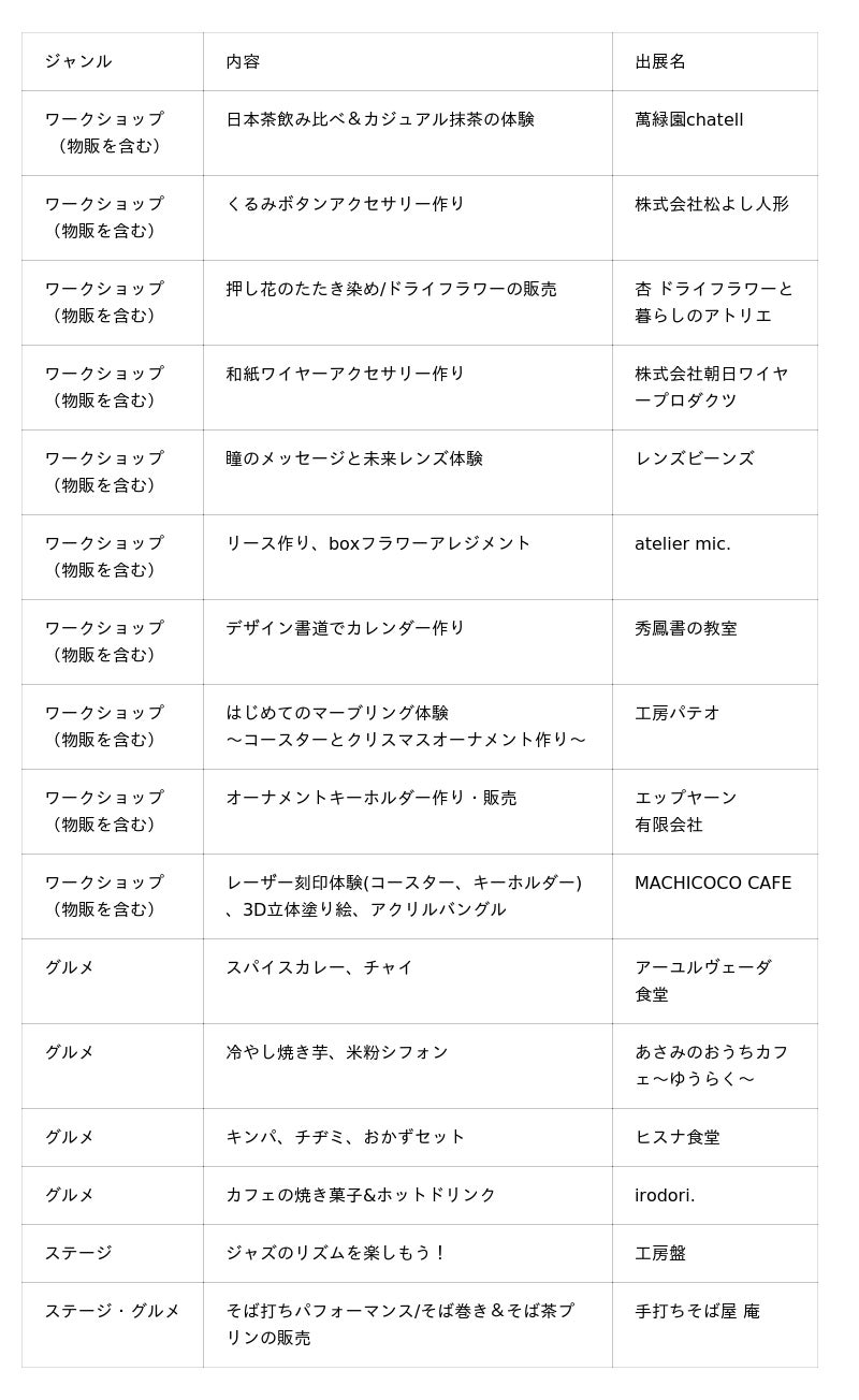 ・入場料:無料(会場内のワークショップ・物販・飲食は有料です)
